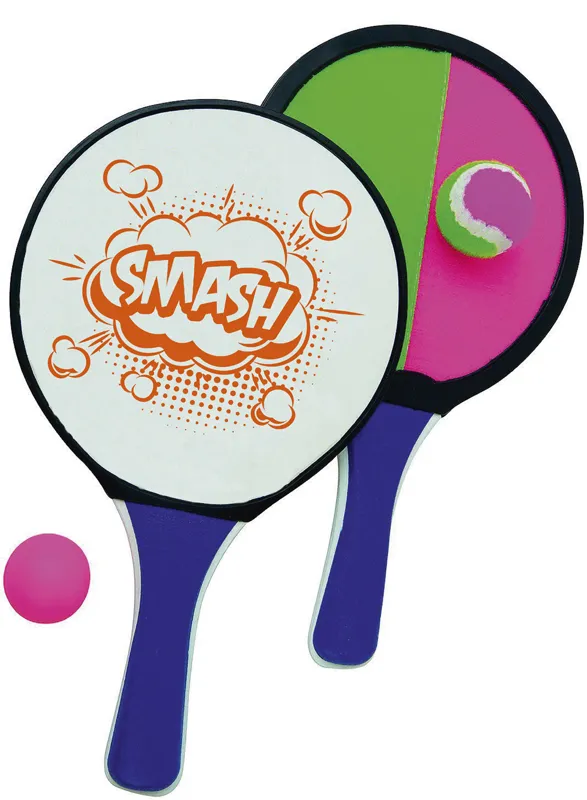 Contient 2 raquettes, 1 balle en plastique et 1 balle scratch.