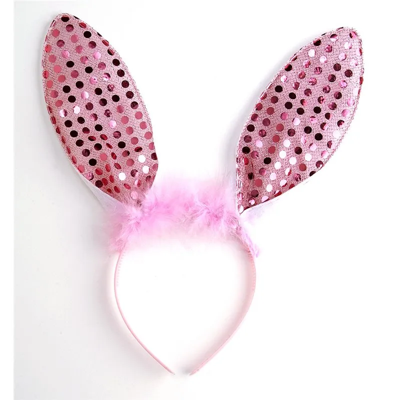 Les oreilles, de 20 cm de hauteur environ, avec une armature métallique à l’intérieur, sont agrémentées de paillettes roses sur le devant et revêtues d’un duvet de plumes blanches sur l’arrière.