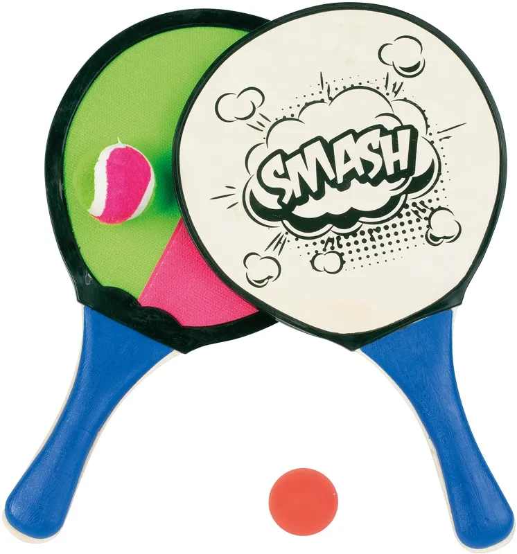 Contient 2 raquettes, 1 balle en plastique et 1 balle scratch.