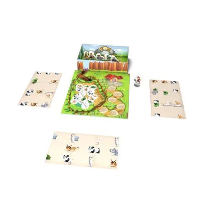 Les animaux s’ennuient dans le zoo et ont envie de prendre la poudre d’escampette. Coopérez, et aidez-les à s’évader ! Chaque joueur pioche trois cartes et tente de reconstituer astucieusement des silhouettes d’animaux. Observez bien les silhouettes : plus vous en associez, plus vous en libérez. Mais attention : le gardien n’est pas loin et se rapproche un peu plus à chaque tour. Combien d’animaux seront sortis du zoo avant son arrivée ?